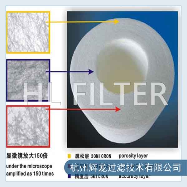 PP棉濾芯采用無(wú)毒無(wú)味的聚丙烯粒子,經(jīng)過(guò)加熱熔融、噴絲、牽引、接受成形而纏繞粘結(jié)的管狀濾芯。過(guò)濾最高精度可達(dá)1μm,濾芯的結(jié)構(gòu)由外向內(nèi)層級(jí)過(guò)濾,越靠近濾芯里層,孔徑越小,過(guò)濾的精度也越高。PP棉具有流量大、耐腐蝕耐高壓低成本等特點(diǎn),主要用于阻擋水中的鐵銹、泥沙、懸浮物等大顆粒物質(zhì)。