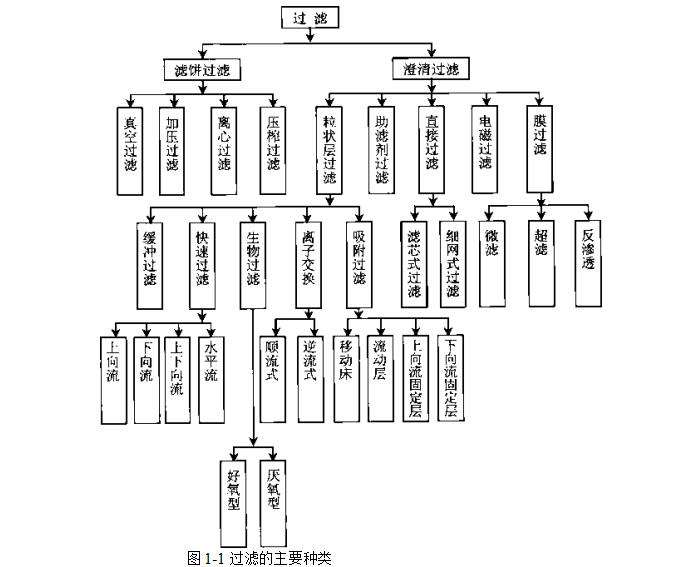 過濾是利用過濾介質將流體與流體中的顆粒分離的單元操作,因此,又可分為澄清過濾和濾餅過濾兩大類.澄清過濾又可分為直接過濾、膜過濾、粒狀層過濾、電磁過濾和助濾劑過濾等類型.