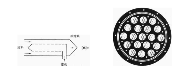 由高速流動的稀薄濾漿所產生的掃流剪切力將沉積在濾管外壁上的固體顆粒掃流掉從而可獲得近乎恒定的濾速.