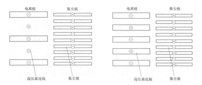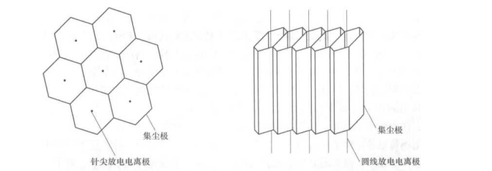 靜電空氣過濾器通常由電離極(正極)和集塵極(負極)兩部分組成,電離極一般為針尖或者圓線,集塵極則為圓筒形或板式結構.