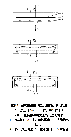 過濾介質固定不動,具有任意形狀的實心旋轉體靠近介質旋轉,加入機殼內的懸浮液由旋轉體帶動,在介質表面上產生了很高的速度梯度.