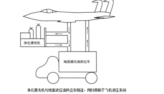 將凈化清洗機直接與飛機液壓油箱連接,同樣方法也可用于其他液壓油輸送車油箱和地面使用的試驗臺油箱.