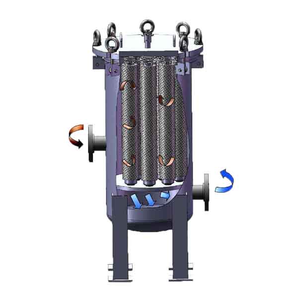 工業級多芯過濾器一般采用側進底出或側進側出的流體方式,確保在更換濾芯過程中,料液不會溢出,造成污染;表面一般采用噴砂貨拋光處理。材質有304、316L為主。設計流量1-3...