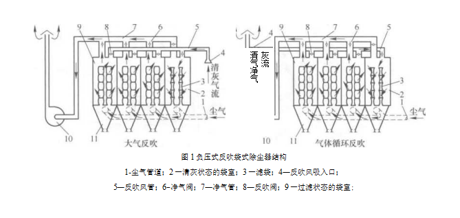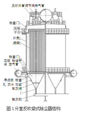 分室反吹袋式除塵器主要由箱體,濾袋,灰斗,反吹風切換閥門和管道以及進氣和排氣管道組成.