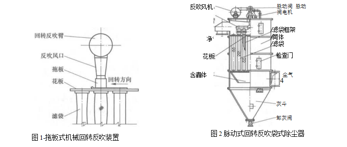 拖板式機械回轉反吹裝置可以克服反吹過程中清灰氣體從花板上流失的缺點脈動式機械回轉反吹是在反吹風管上增設脈動閥,使反吹風機產生的清灰氣流產生脈動.