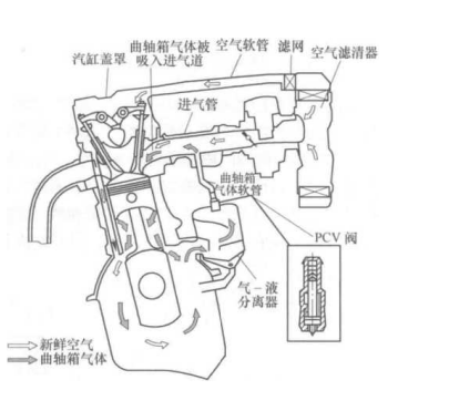 強制式曲軸箱通風系統又稱PCV系統,在發動機工作時,會有部分可燃混合氣和燃燒產物經活塞環由汽缸竄入曲軸箱內.
