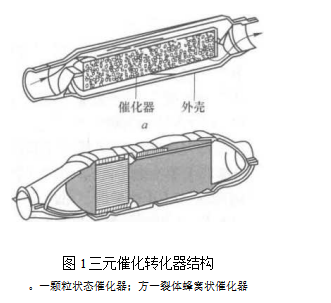 三元催化轉化器的工作原理是:當高溫的汽車尾氣通過凈化裝置時,三元催化轉化器中的凈化劑將增強CO、HC和NO,的三種氣體的活性,促使其進行一定的氧化還原反應.