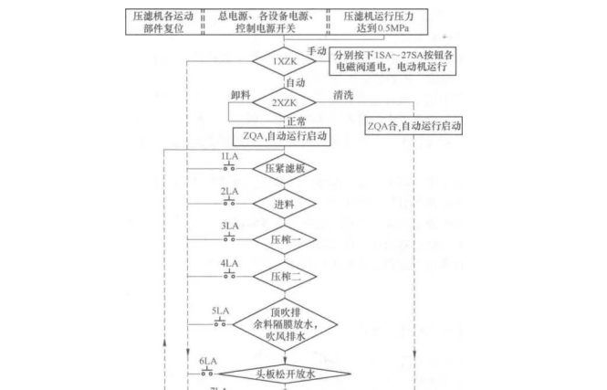 自動廂式壓濾機的整個操作可以全自動,也可以手動,局部聯(lián)動,電氣控制柜接受來自壓濾機上的限位開關(guān),壓力開關(guān)或附屬設(shè)備的信號以及人工指令,經(jīng)電腦綜合來控制各電動機和閥類啟動,同時模擬盤上也順利地給出運轉(zhuǎn)指示,從而完成整個程序...