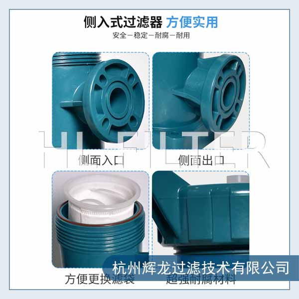 1、產品為全新塑膠過濾器,側進側出法蘭式出入口一體成型、經濟耐用。