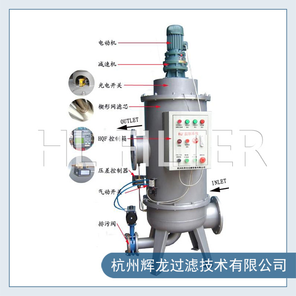 自動過濾器采用由于智能化(PLC、PAC)設計,系統(tǒng)可自動識別雜質沉積程度,給排污閥信號自動排污。水由進水口進入自清洗過濾器機體,利用濾網直接攔截水中的雜質,去除水體懸浮物、顆粒物,降低濁度,凈化水質,減少系統(tǒng)污垢、菌藻、銹蝕等產生,以凈化水質及保護系統(tǒng)其他設備正常工作的精密設備。